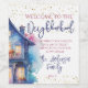 A gorgeous watercolor housewarming welcome wine label for a neighbour. This design features a pink and purple house! Easy to customise with your own welcome gift details.
