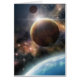 Waiting for clearance in geostationary orbit to leave the home planet and explore new worlds in outer space. Digital artwork by Liz Molnar. Planets, stars, space clouds, lights were made with basic Photoshop effects and brushes, planets' surfaces created from photos.