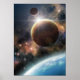 Waiting for clearance in geostationary orbit to leave the home planet and explore new worlds in outer space. Personalizable digital artwork by Liz Molnar. Planets, stars, space clouds, lights were made with basic Photoshop effects and brushes, planets' surfaces created from photos.