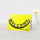 This is rustic yellow background with black big smile welcome Greeting card. Welcome your new employees to your team and make them feel appreciated with this cheerful and stylish pattern business employee welcome greeting card. This welcome card for new employees or clients in the company.