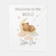 Wrap your little one in love with this adorable Welcome to the World baby blanket, featuring a charming watercolor illustration of a sleeping bear on a crescent moon surrounded by soft pastel clouds and stars.