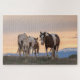 New mum, Theya, leads her tiny foal across the range as the sun begins to rise. Her half-brother, Thor, coming up the rear, keeps the little one in line.