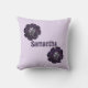 This nursery pillow features a purple painted flowers that surround the baby's name. The flowers display shades of purple and the entire design is placed against a light purple background. "Welcome To The World" and the baby's birth date are on the back. All text and the background colour can easily be customised if you desire.