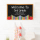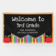 This Welcome to 3rd grade banner offers a bright and colourful design. The banner features red apples and coloured pencils and custom text for any grade.