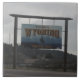A ceramic tile featuring a photo of the Welcome to Wyoming sign.