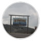A knob featuring a photo of a Welcome to Wyoming sign.