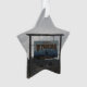 An ornament featuring a photo of a welcome to Wyoming sign.
