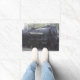 A doormat featuring a photo of a train engine.