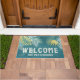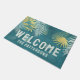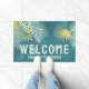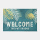 Welcome Tropical Golden Palm Family Name Doormats Door Mats features a modern tropical palm leaf pattern in a gold and teal design with the text "Welcome" and your personalised family name at the base. Designed by © Evco Studio www.zazzle.com/store/evcostudio