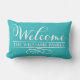 Welcome Turquoise Blue Custom Last Name Lumbar Cushion