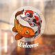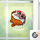 A window cling to welcome your guests or customers, for a home, shop or aquarium; featuring two koi carp friends swimming in a circle (or Yin Yang shape), one with golden scales, one tricolor. My version of a traditional and popular motif. Change the default "Welcome" text to your preferred caption; you could personalise it along themes of friendship, difference, or your deep affection for koi carp.