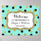 Welcome to our Wedding sign with custom name and date in turquoise teal blue with black and gold confetti pattern, please note gold is photographic effect only.