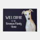 Welcome to the "Your Family Name" Home, or change to the cottage. A dog themed welcome mat for the family who loves their dog as part of their family. The design features a gorgeous Whippet. Personalise your family name.