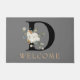 WELCOME White Floral Gold Accents Monogram D Doormat