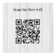 For hotel rooms, restaurant tables, air bnb. Personalise and add your business logo, and space for 4 QR codes. Rustic white wood as background. Black text.