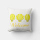Decorative throw pillow features an original marker illustration of a yellow seashell with WELCOME in a fun font. Perfect for beach-themed decorating!