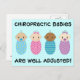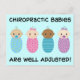This design features four cute multi-cultural babies, boy and girls, two even have pacifiers! The text reads "Chiropractic Babies Are Well Adjusted!"
