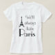 A white t-shirt featuring the saying "We'll always have Paris" along with a picture of the Eiffel Tower! Black version also available.