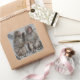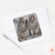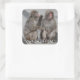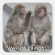 Square sticker with an image of two long-tailed Macaque monkeys, one seemingly consoling the other, and optional text.
