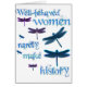 The humourous feminist slogan, "Well-behaved women rarely make history," is accompanied by Dragonflies in shades of blue and purple on a wide range of products. Find t-shirts, stationery, and housewares with this colourful design.
