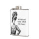 The flask itself is fine. It’s a cheap flask, obviously bought in bulk, however am prepared to overlook that. Given that it is a personalized item, I would have liked to have seen gift boxing instead of the generic packaging. Terrible printing, and/or quality. It’s a cheap, tacky vinyl. It is not cut straight and is also applied in a way that it is overhanging the bottom, causing the glue to catch on items and it will eventually roll and tear, damaging the wrap.