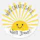 Celebrate achievement and encouragement with this bright and cheerful “Well done!” teacher sticker, featuring a sunny sunshine illustration and fully customisable text to include a student or teacher name (e.g., “{name} says Well done!”). A simple yet powerful way to share positive feedback and motivation in the classroom.