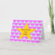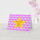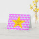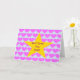 Congratulations card. Card is pale blue with a repeat pink heart motif as a background to a central large yellow star. Template text message on front reads 'Well Done! You Star!' Template text message inside reads 'CONGRATULATIONS!' All text can be easily edited to personalize a message of your choice if desired. The congratulations card is suitable to give for many occasions!