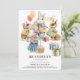 This cute girl's 1st/first birthday party invitation features a bunny, squirrel and a pair of mice with a cupcake, a lot of gifts, balloons and flags. The reverse side features a light pink background with white polka dots. Personalise for your needs. You can find matching products at my store.