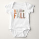 This fall-themed design warmly welcomes the autumn season with the phrase "Hello Fall." The words are arranged in a simple yet visually appealing layout, with "Hello" placed above "Fall." Each letter in the phrase is presented in a bold, blocky font with a slightly distressed texture, giving it a rustic, weathered look that complements the autumnal theme.