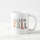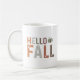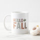 This fall-themed design warmly welcomes the autumn season with the phrase "Hello Fall." The words are arranged in a simple yet visually appealing layout, with "Hello" placed above "Fall." Each letter in the phrase is presented in a bold, blocky font with a slightly distressed texture, giving it a rustic, weathered look that complements the autumnal theme.