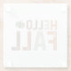This fall-themed design warmly welcomes the autumn season with the phrase "Hello Fall." The words are arranged in a simple yet visually appealing layout, with "Hello" placed above "Fall." Each letter in the phrase is presented in a bold, blocky font with a slightly distressed texture, giving it a rustic, weathered look that complements the autumnal theme.