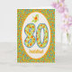 A pretty 80th Birthday Card, with the greeting in Welsh and a pattern of bright orange Pot Marigolds in the border as well as in the numbers. From hand-painted motif by Judy Adamson.