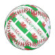 Baseball features a tiled version of the Welsh Flag with the word, WALES, below, in the flag colours. A white fractal of squiggly squares holds a spot for a name to personalise. Cool to use at a reunion of a travel group or Welsh family reunion. Fun for clubs, too.
