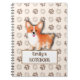 Notebook with charming Welsh Corgi Pembroke. This adorable design showcases cute Welsh Corgi Pembroke. Against a backdrop of dog footprints. Bone like text and customisable name.