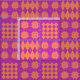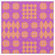 A chic fabric with a four-way pattern of traditional Welsh Tapestry motifs in Brilliant Orange on a Magenta Pink background.