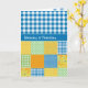 A Grandparents Day Card with 'Happy Grandparents Day' in Welsh with a Faux Patchwork of Daffodil patterns teamed with Blue and White Check Gingham.