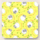 A set of six fun 'Wales Forever' Cork-backed Coasters, with a pattern of comic sheep and 'Cymru am Byth' in Red, on a Sunshiny Yellow background that you can change if you wish.