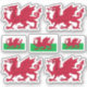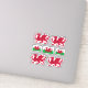 Four Custom-cut vinyl stickers with the coat of arms of Wales and three stickers with the Welsh flag in the centre