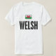 This shirt shows the Welsh flag in patriotic red, white and green, with the word "WELSH" written beneath in black bold lettering.
