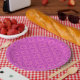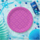 A chic Paper Plate, with a traditional Welsh Tapestry pattern in Magenta on a Bright Pink background. This pattern can be adjusted to fit any Paper Plate.
