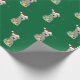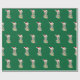 A Welsh terrier is draped in Christmas lights, adorned with a Santa hat, and has a fir branch sticking out of its mouth in this green Christmas wrapping paper.