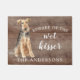 Funny beware of the wet kisser" Welsh Terrier Dog door mat set on a rustic faux background. Visit our shop to view a large assortment of dog breads