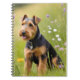 Cute Welsh Terrier dog in a meadow of wildflowers