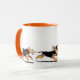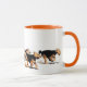Colorful mug with running Welsh terriers racing round it.