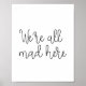 We're all mad here: fun quote from Lewis Carroll's Alice's adventures in Wonderland classic novel. Customisable text colour.