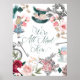 Fun, magical, and whimsical poster design perfect for an Alice in Wonderland theme party. Design features a beautiful collage of our own illustrations & watercolor artwork paired with the iconic vintage Alice in wonderland illustrations that we meticulously enhanced with our own personal touch and watercolor enhancement. Fun and cute sign perfect for a first birthday celebration. "We're All Made Here" displayed in an elegant vintage typography. Handdrawn artwork by Moodthology Papery.