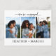 We’re engaged! Share your exciting news with family and friends using this customizable engagement announcement postcard featuring three photo slots. The design includes elegant calligraphy script and classic typography. To personalize it, click "Personalize This Design," upload your photos, and enter your details. Zazzle will take care of the rest!