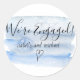 Blue watercolor wash seal for your engagement invitations or announcements. A blue watercolor wash sets the stage for your announcment "We're Engaged!" Your names and a hand-drawn heart follow. Very hip, cool, modern and trendy.