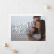 This adorable engagement announcement features the phrase "we're engaged!" in white script calligraphy and can be positioned anywhere on the card. Text fields are customisable.