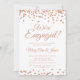 We're Engaged! Rose Gold Glitter Confetti White Invitation